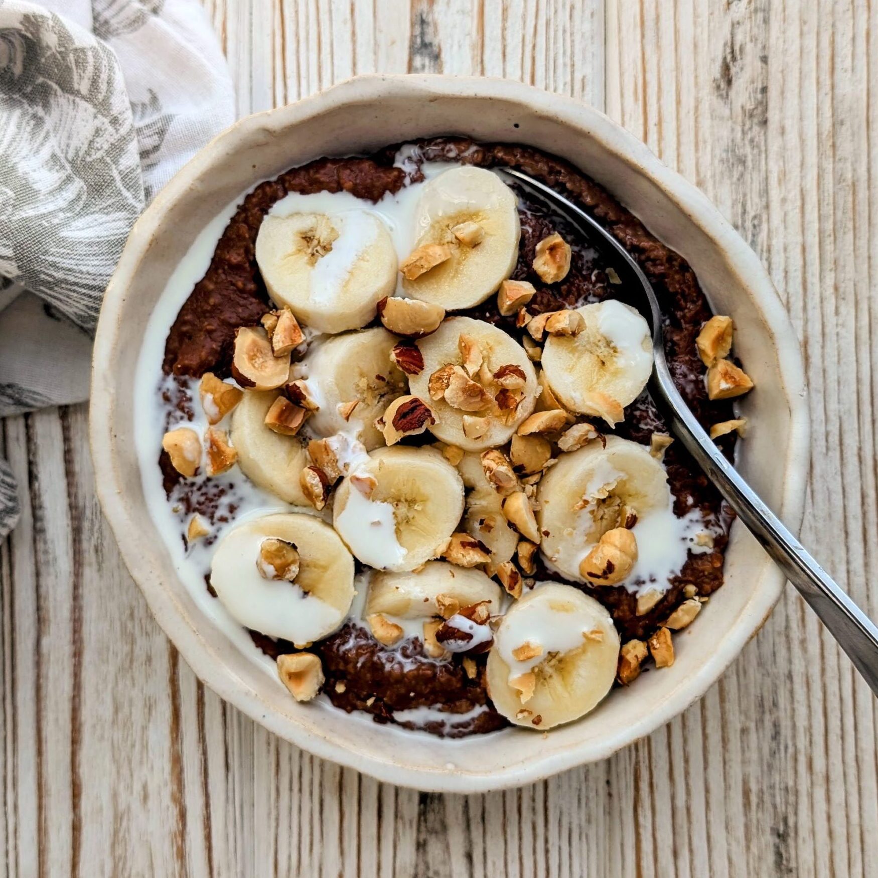 This dish is what happens when dessert and breakfast join forces. Creamy, lightly vanilla‑scented oatmeal becomes a cozy canvas for the irresistible trifecta of dark chocolate, peanuts, and banana—rich, nutty, naturally sweet, and deeply satisfying. Rich, dark...
